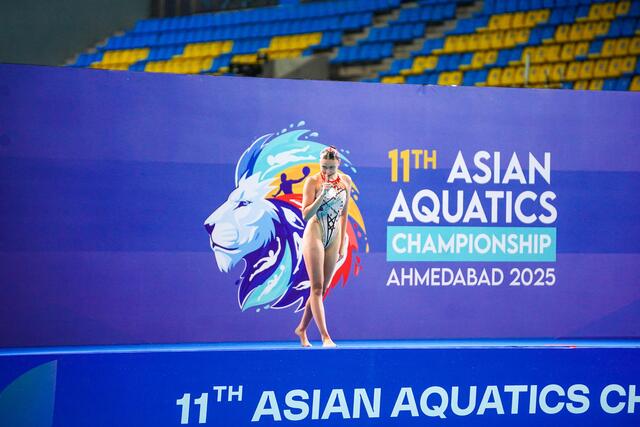 Үндістаннның Ахмедабадад қаласында өтіп жатқан су спорты түрлерінен Азия чемпионатында аруларымыз еркін жаттығуда өнер көрсетіп, жалпыкомандалық есепте топ жарды, деп хабарлады Туризм және спорт министрлігі Спортты дамыту дирекциясының баспасөз қызметі.