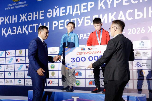 Номинация иегерлеріне Қазақстан күрес федерациясы 150 мың теңгенің сертификаттарын тапсырды.