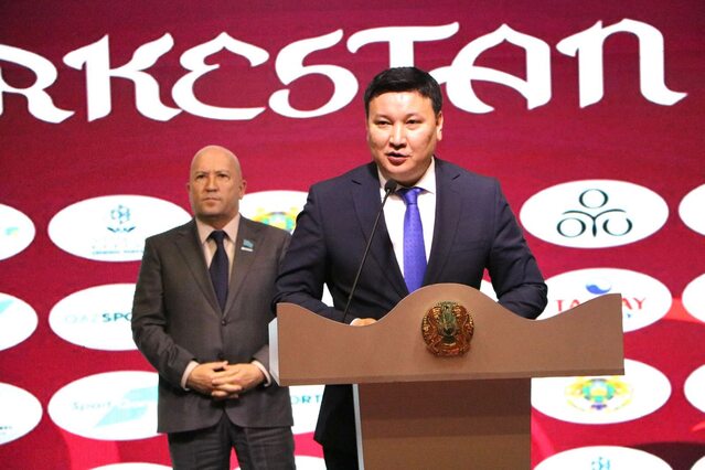 – Добро пожаловать в духовную столицу тюркского мира – священный Туркестан! Сегодня в рамках Кубка мира по казахской борьбе имени национального героя Қажымұкана Мұңайтпасұлы проходит это уникальное событие. Казахская борьба — это наш национальный вид спорта, который воспевает дух и стойкость. В настоящее время в более чем 40 странах мира созданы федерации казахской борьбы, которые активно работают. В последние годы стабильно проводятся чемпионаты мира, Азии, Африки и Европы, что поднимет казахскую борьбу на новый уровень. Кроме того, такие турниры, как «Тұран барысы», «Қазақстан барысы», «Еуразия барысы» и «Әлем барысы», становятся очень популярными среди народа. Недавно с успехом завершился чемпионат Азии по казахской борьбе среди взрослых. Сегодня Туркестан становится международным центром казахской борьбы, – отметил Ертай Кенжебекулы.